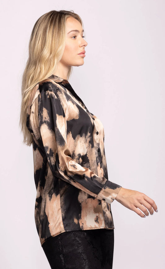 Lois - Long Sleeve Button-Up Blouse w/ Floral Design