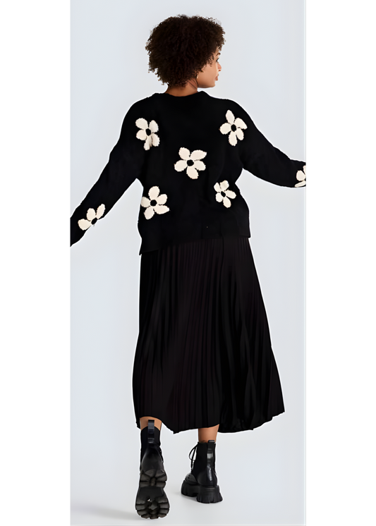 Jessica Laura – Boat Neck Knit Sweater with Flowers
