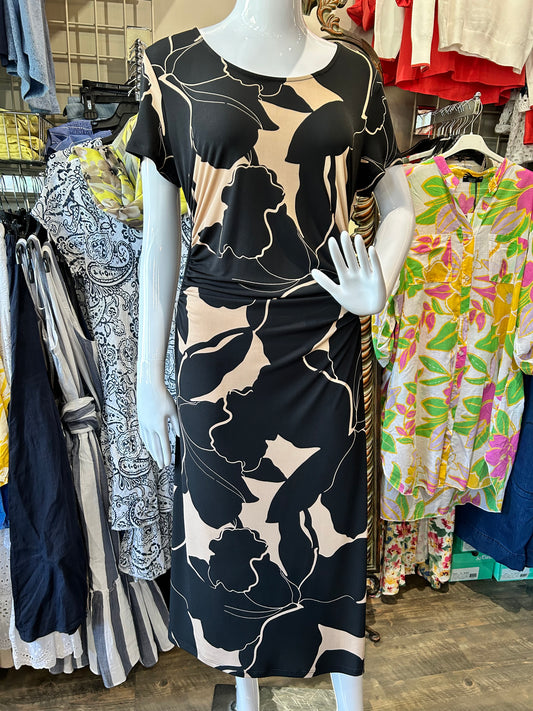 Bali – Cap Sleeve Midi Dress with Tropical Floral Print