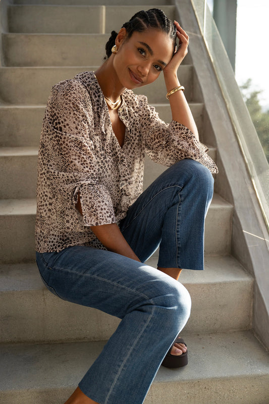 Liverpool - Woven Top With Front Tie (Nomad Ikat Print)