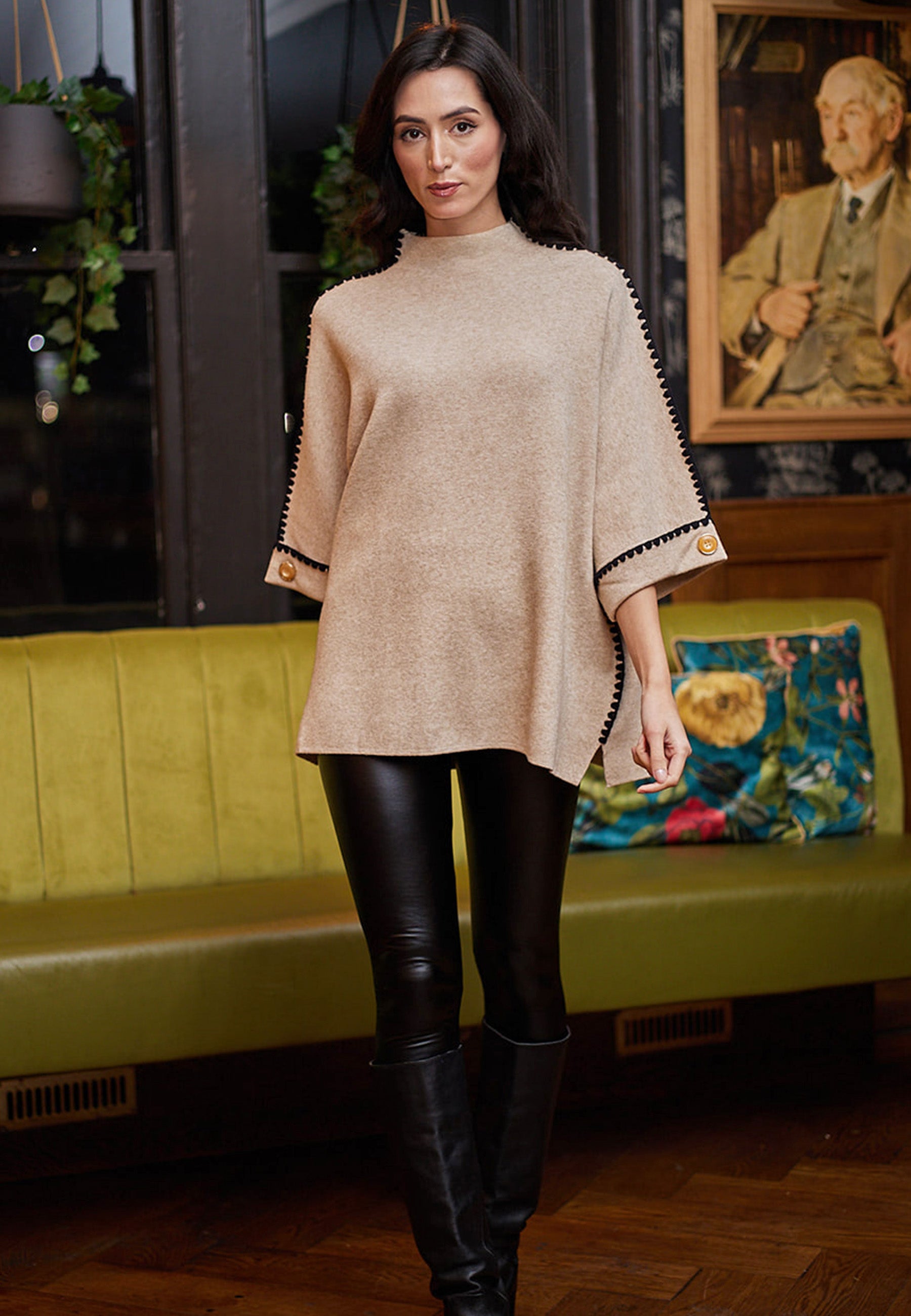 Angeleye's lightweight poncho-style coverup with a soft knit drape for effortless layering. A chic neutral you can throw over tees, blouses, or dresses.