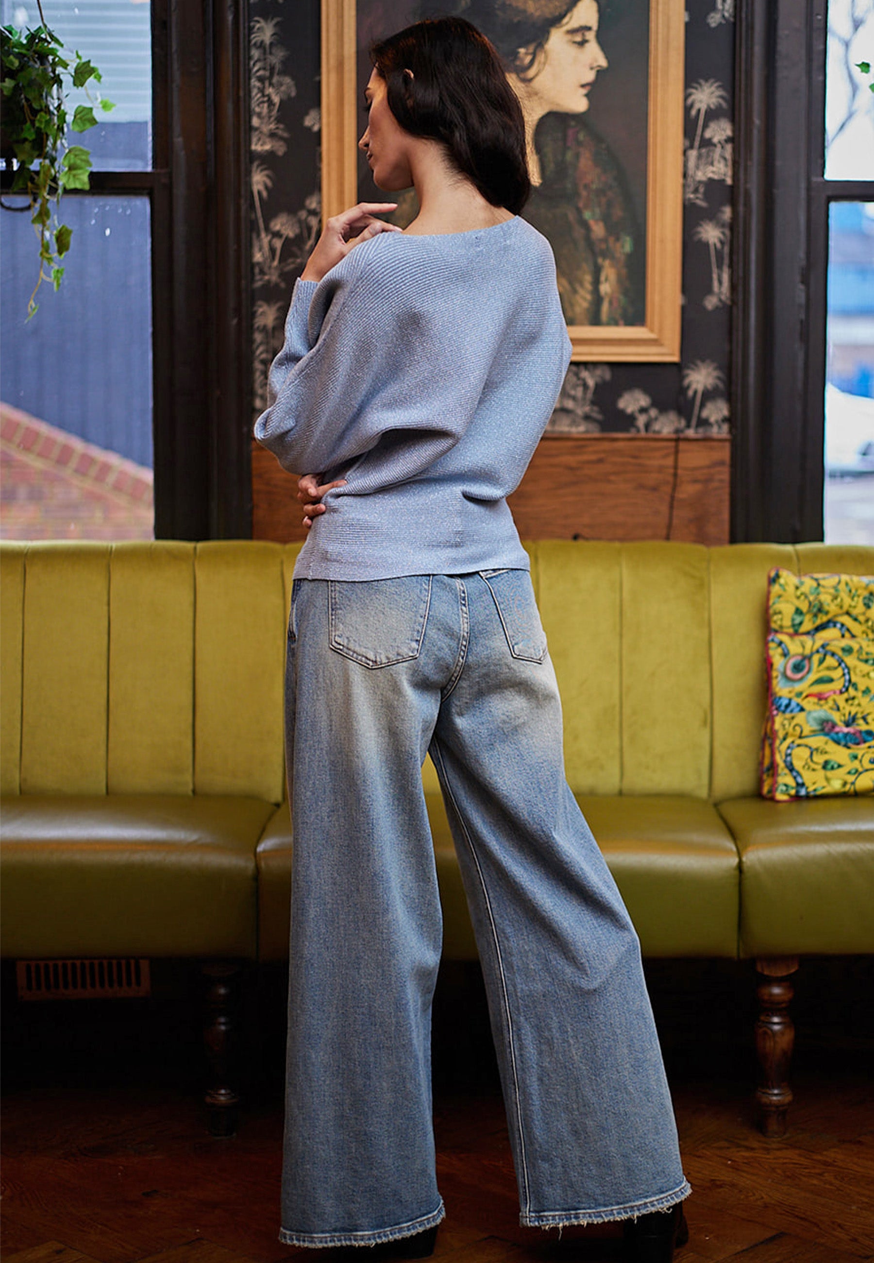 Soft knit jumper in subtle sparkle. Features long sleeves and a comfortable crew neckline—perfect from desk to dinner.