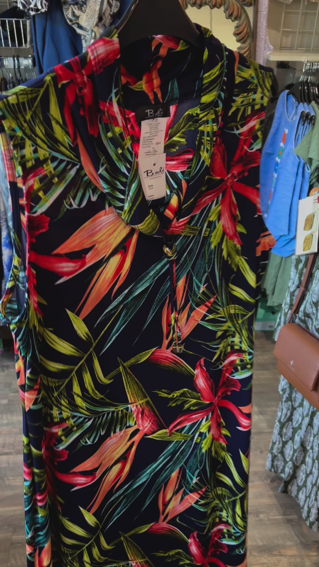 Entrez dans le paradis avec notre robe longue sans manches à col bénitier Bali, dotée d'une superbe fente latérale et enveloppée d'un imprimé palmier bleu marine pour une touche tropicale. C'est votre évasion parfaite vers une élégance sans effort, idéale pour les nuits d'été ou les promenades en bord de mer.