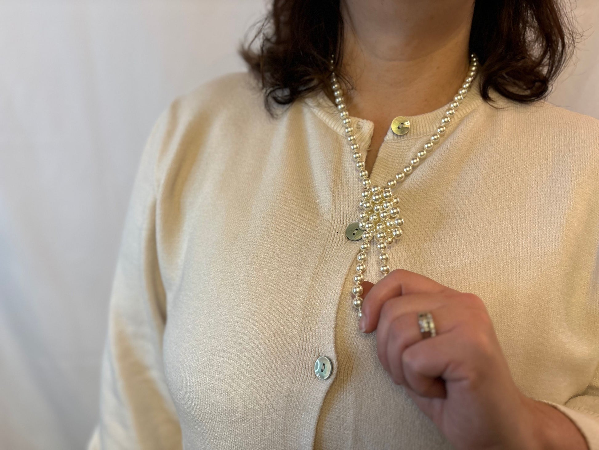 This classic long necklace features lustrous faux pearls, making it a perfect statement piece for layering or wearing on its own. An effortlessly chic addition to any jewelry collection.