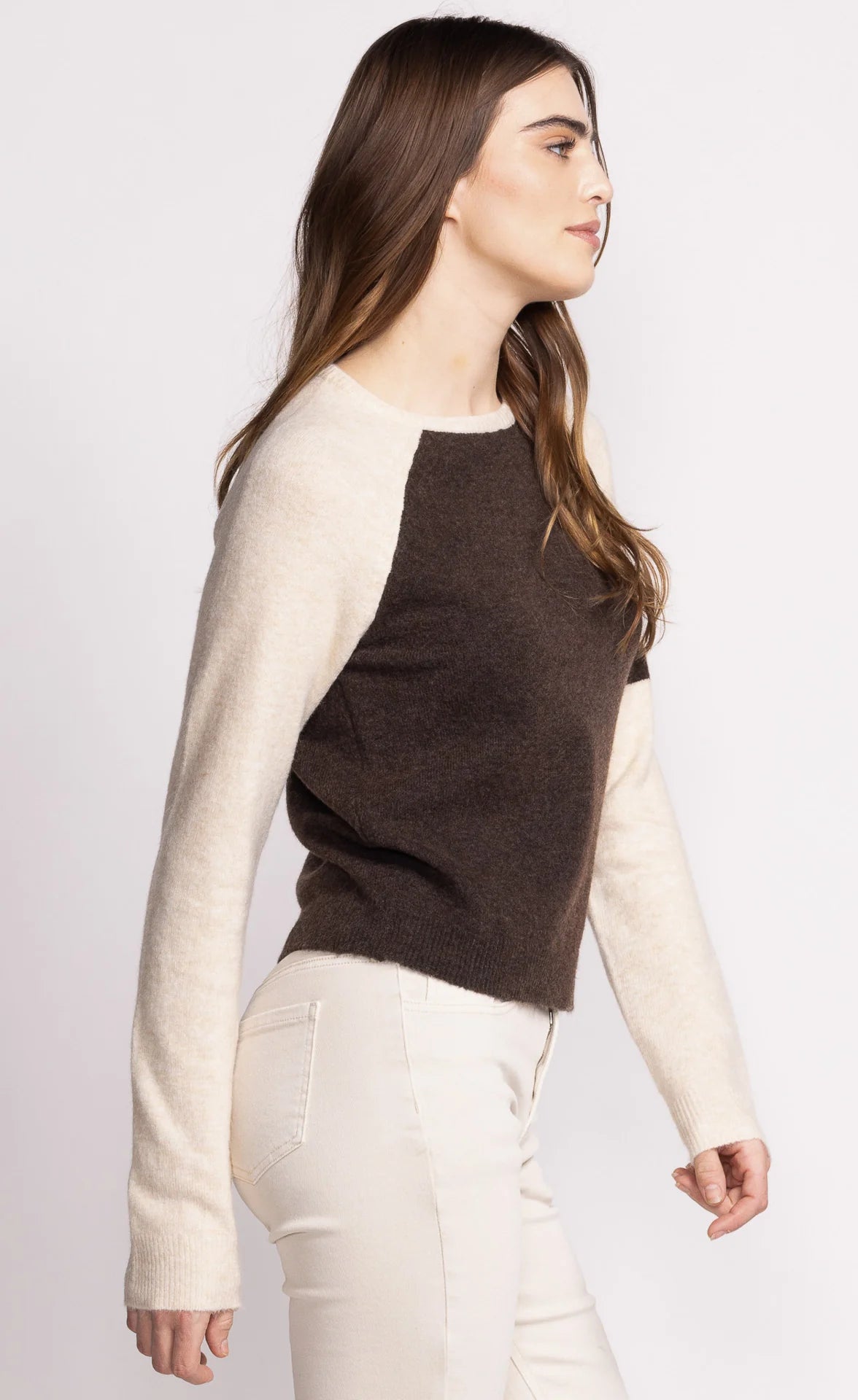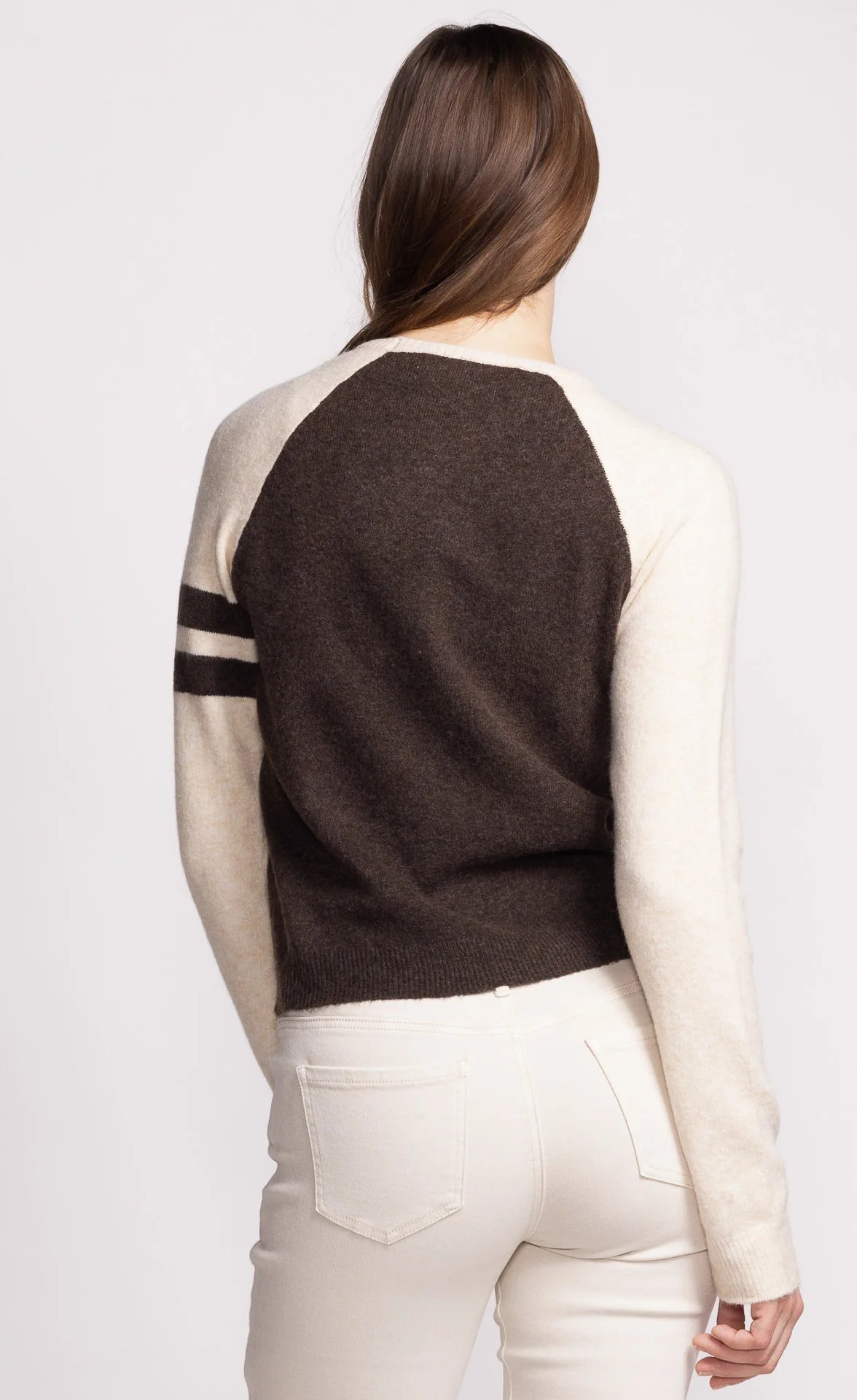 The Callista Sweater features raglan sleeves with contrast detailing and a subtle puppy patch at the front, blending sporty and chic. Style it with joggers and sneakers for a fun, casual look!