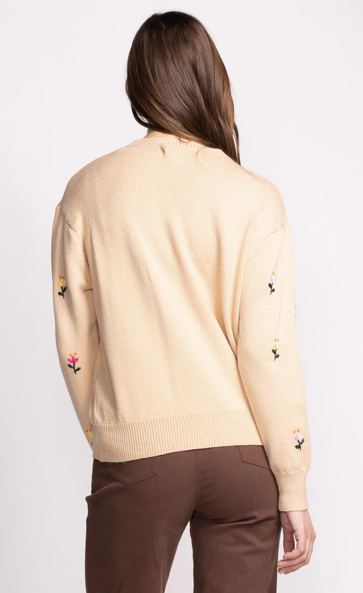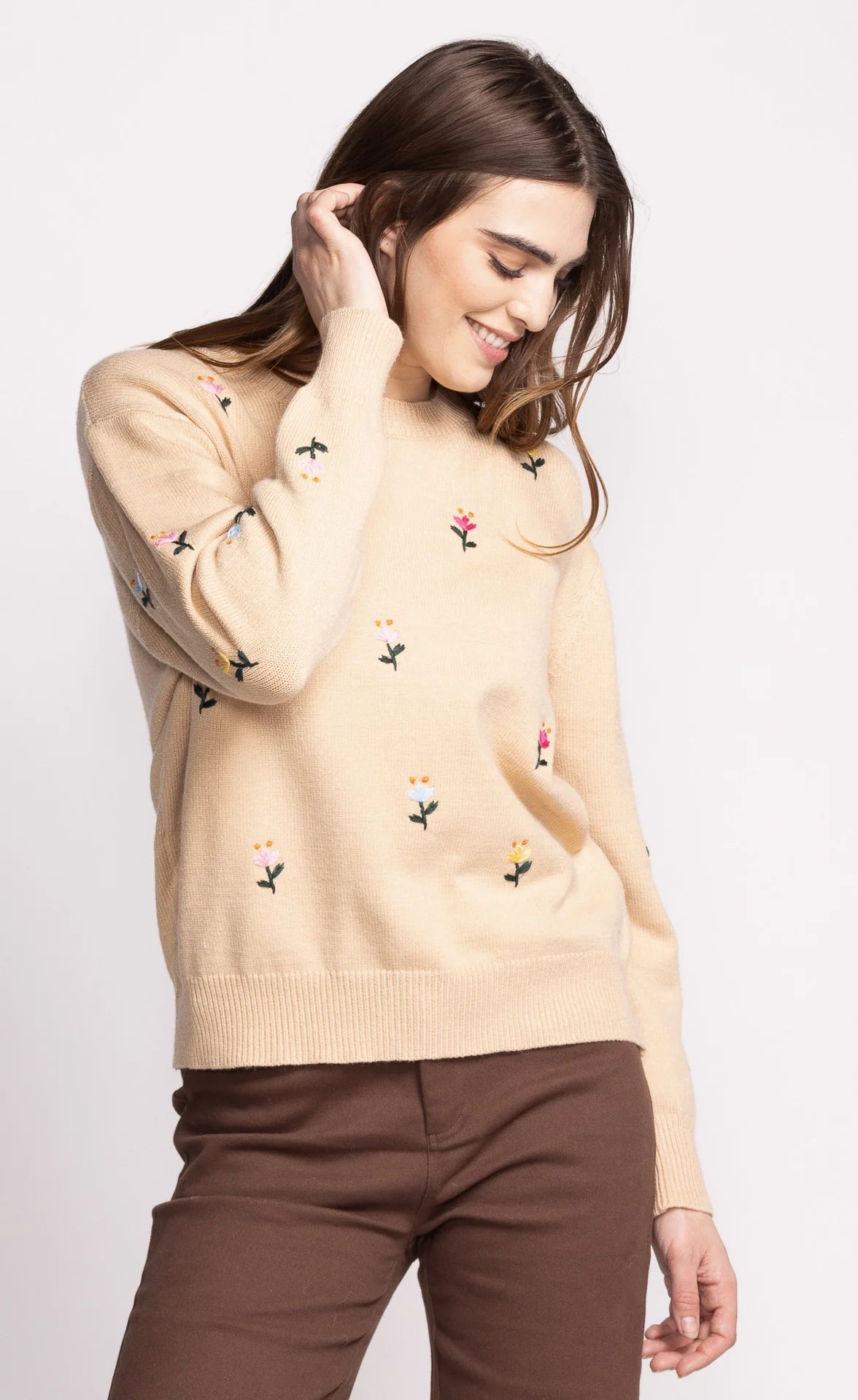 The Eva Sweater is super chic with delicate flower embroidery, perfect for adding a subtle touch of elegance. Pair it with high-waisted jeans or a sleek skirt for a minimalist yet stylish look.
