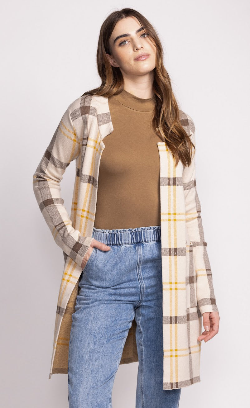 Pink Martini - Harmon Cardi in Yellow/Brown Plaid