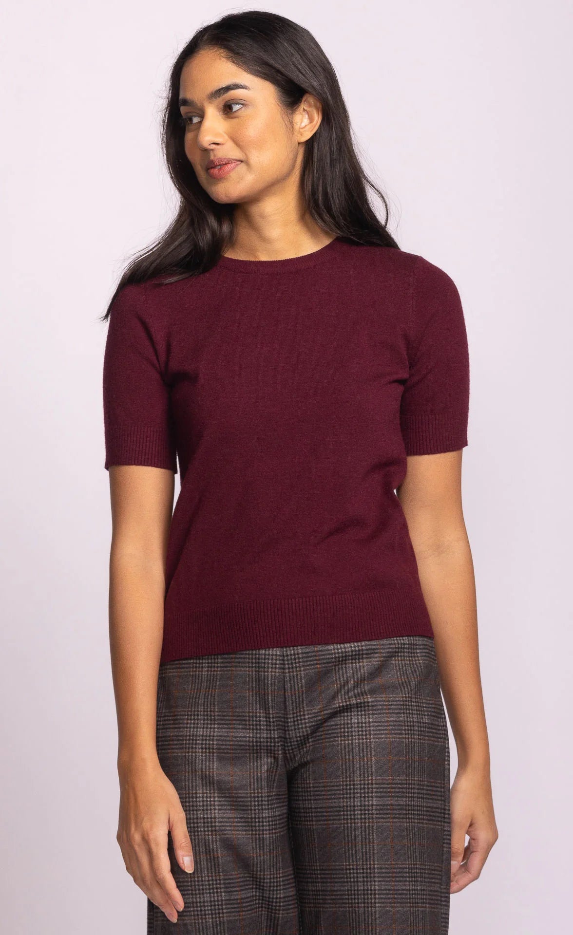 The Remo Top is a soft knit basic designed for effortless everyday wear. Featuring a classic round neckline, short sleeves, and ribbed hem and cuffs, this knit top pairs easily with jeans, trousers, or skirts for a timeless casual look.
