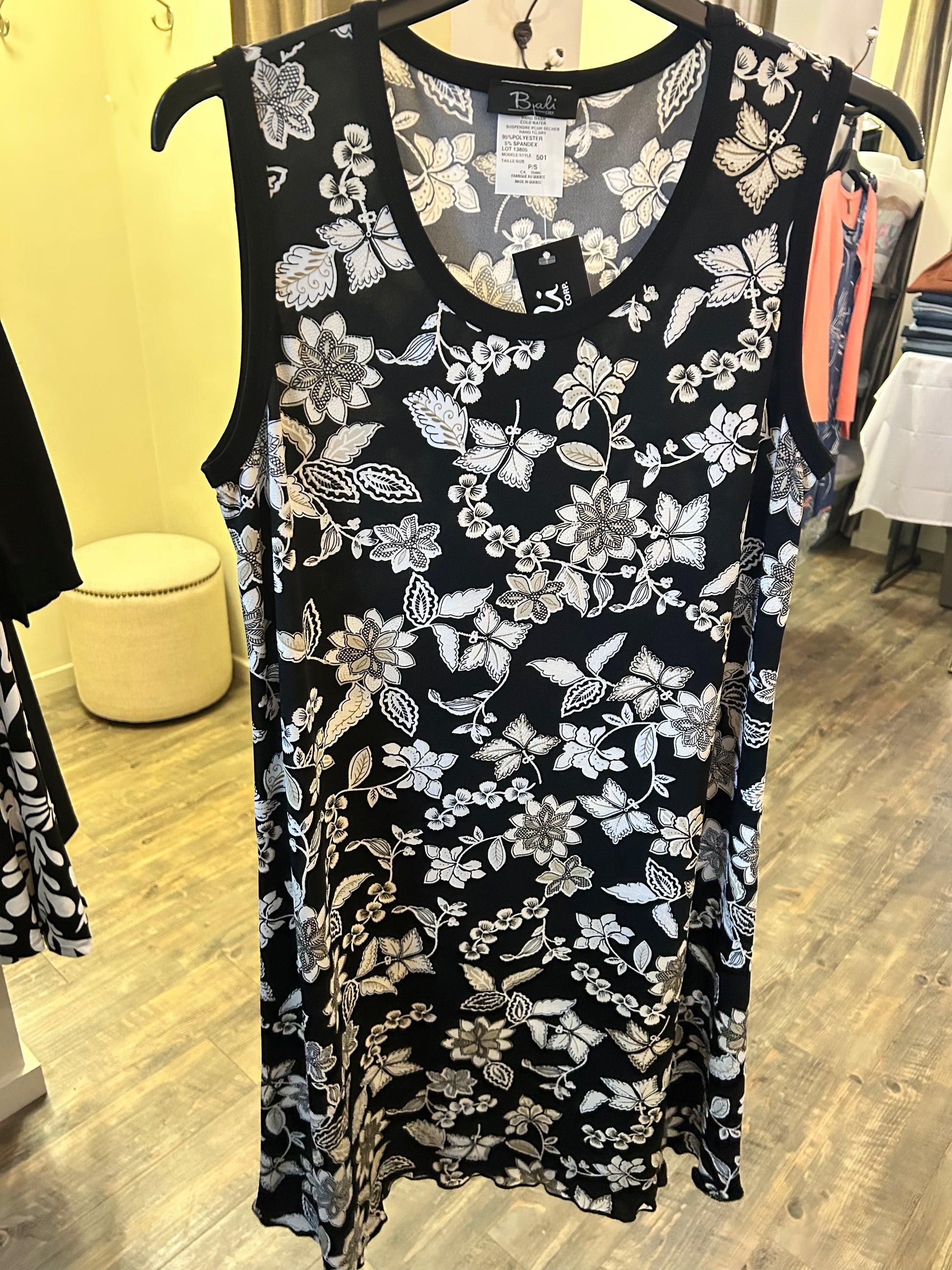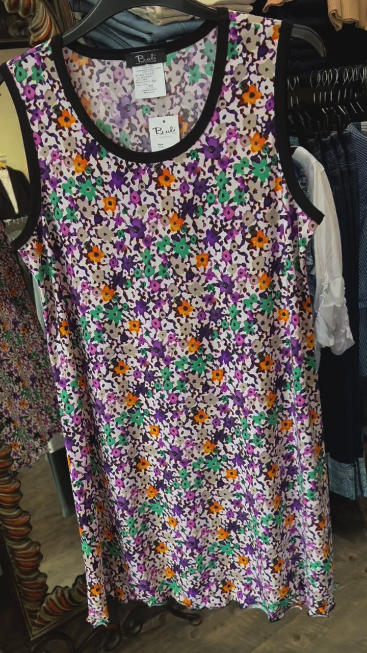 This easygoing mixed-pattern dress features a flattering sleeveless cut, bold prints, and contrast binding at the neckline for a stylish touch. A throw-on-and-go dress you'll reach for all season.