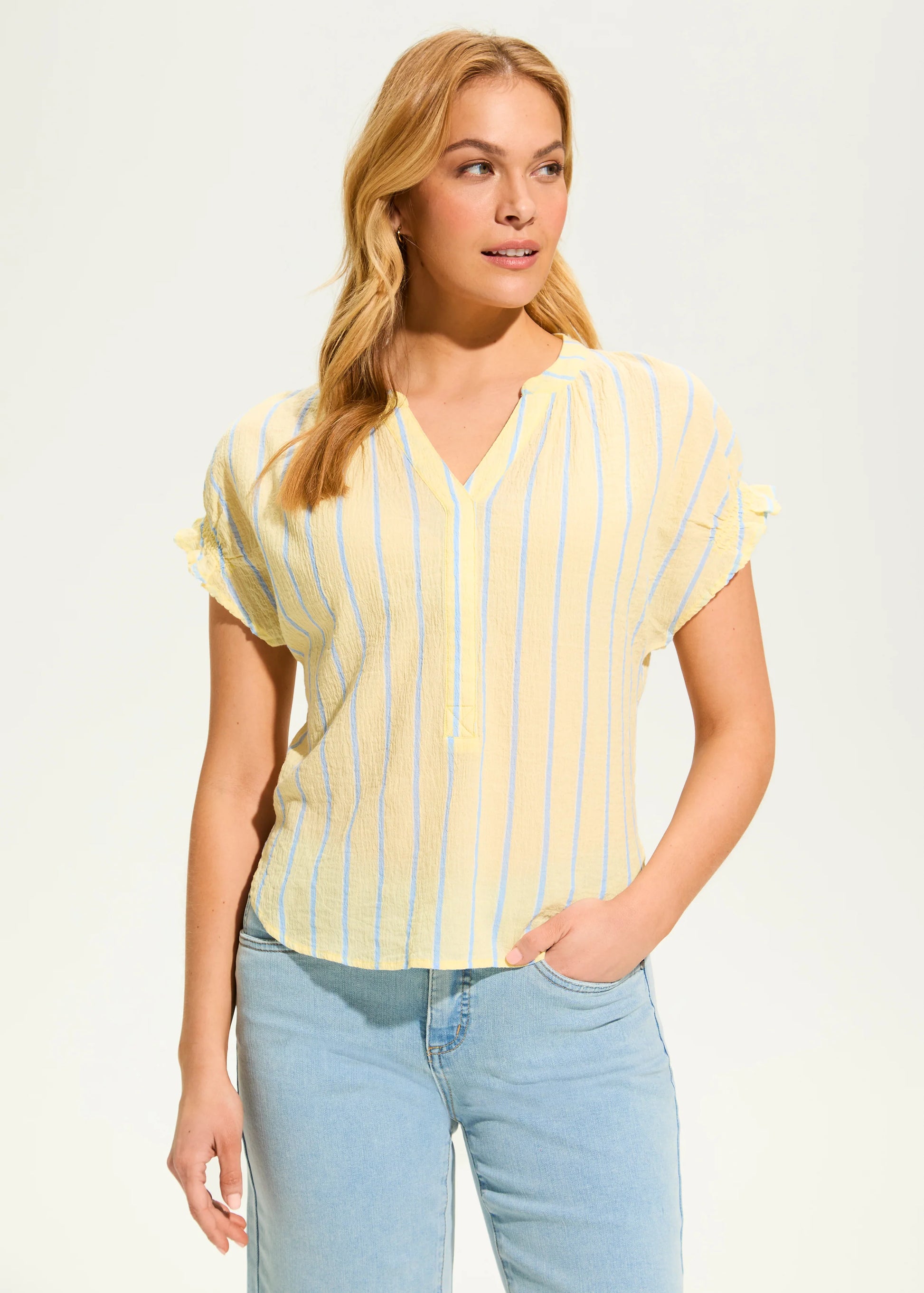 Perfect for relaxed days, this short-sleeve striped cotton top pairs effortlessly with denim for a casual, boho-inspired look.