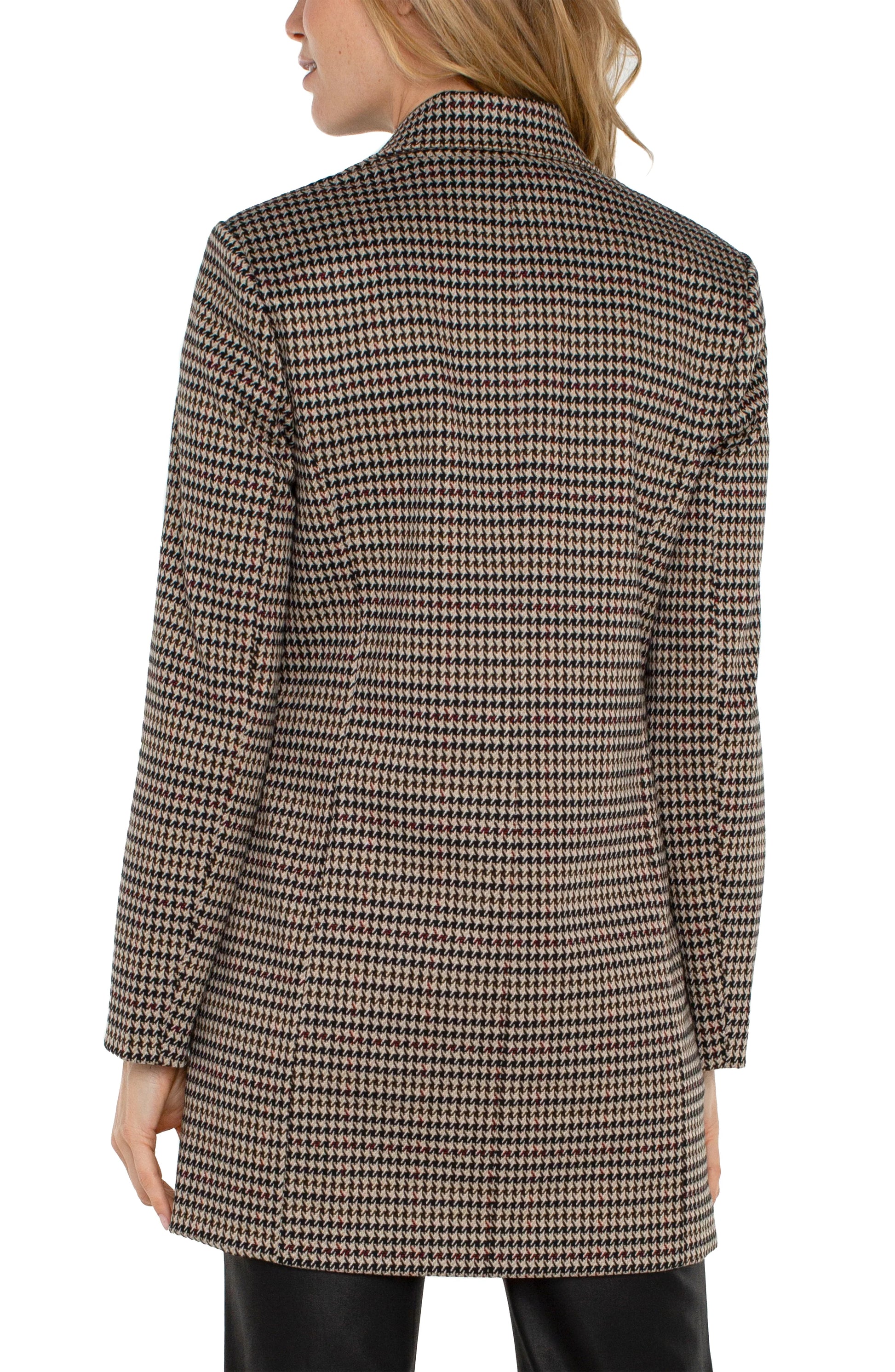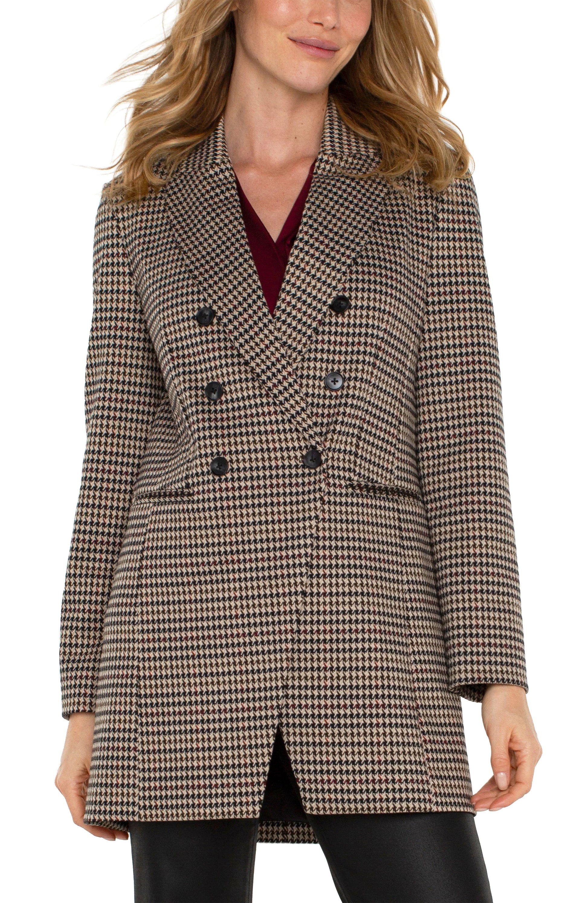 Introducing our timeless and sophisticated Double Breasted Longline Blazer, the perfect example of classic elegance fused with contemporary charm. In a striking black and tan houndstooth, this blazer is a modern interpretation of a traditional favourite. The double-breasted silhouette adds a tailored flair, highlighting your figure with its structured yet feminine shape.