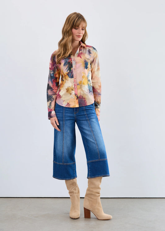 FDJ - Long-Sleeve Ribbed Top, Multi Bloomsbury