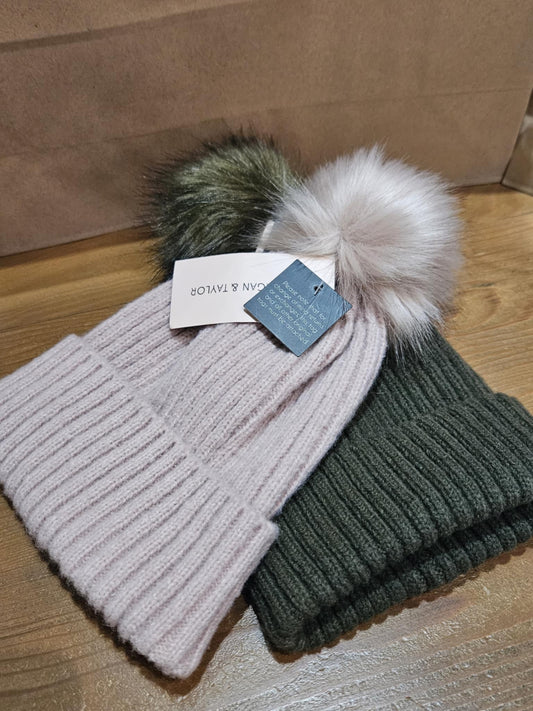 C.C Beanie - Waffle Knit Beanie with Faux Fur Pom
