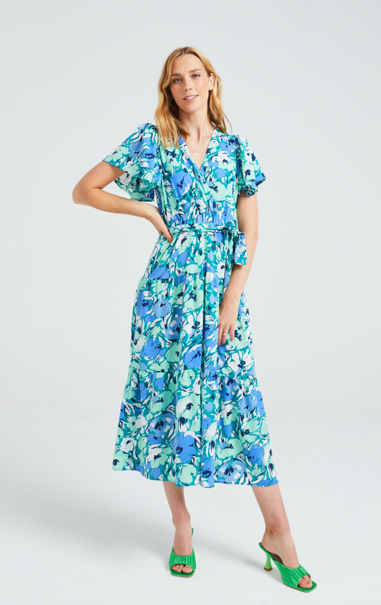 Angeleye - 仿裹身荷叶袖多层长连衣裙