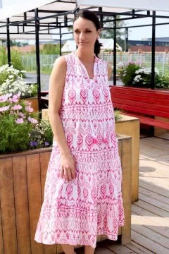 Carré Noir 粉色印花长连衣裙