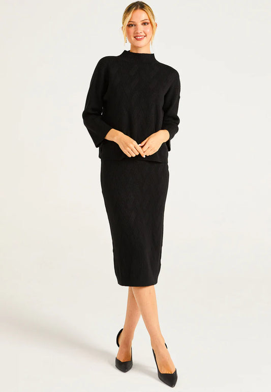 Angeleye - Knitted Pattern Mock Neck Top in Black