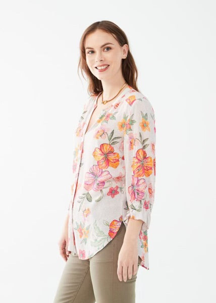 Michael Tyler - 短袖 V 领珊瑚印花衬衫