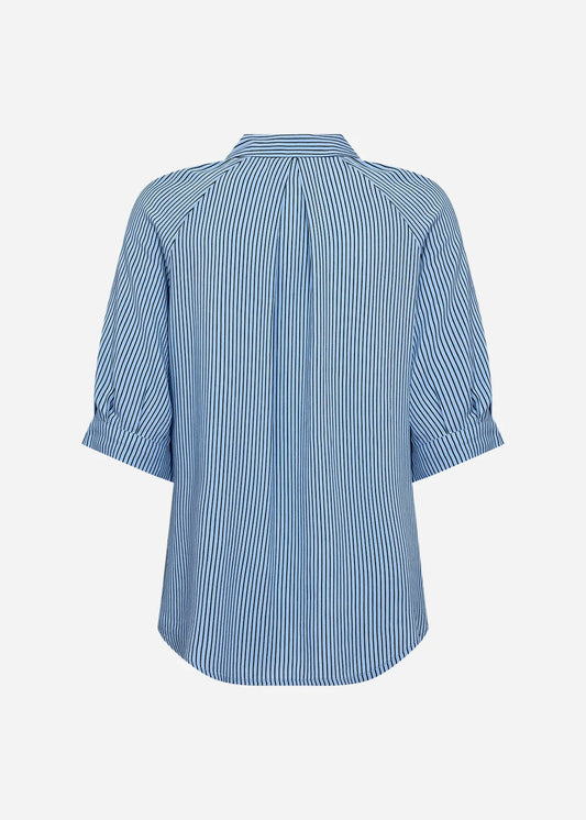Orly - Blue & White Stripe Blouse with Ruffle Detail