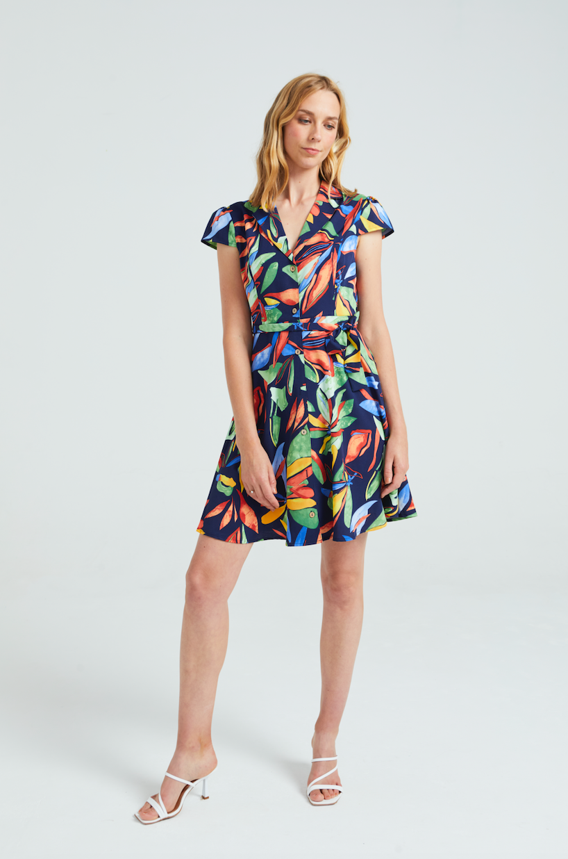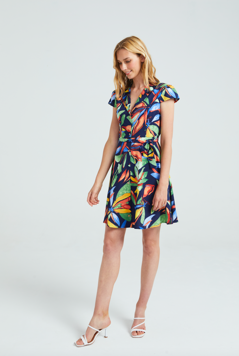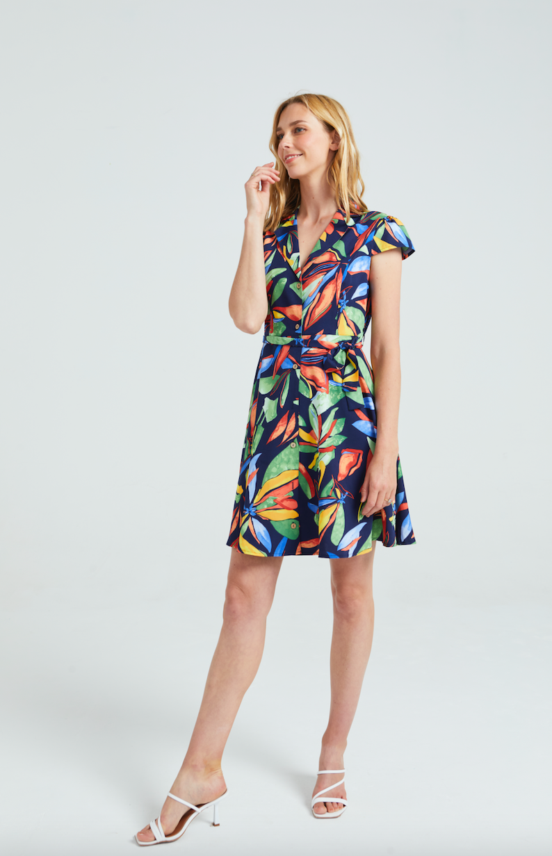 Angeleye 的“Simone”连衣裙让您尽享热带优雅,这是一款带纽扣领的美丽连衣裙,配有同色腰带和短袖,全部采用别致的海军蓝热带印花。这款连衣裙是您通往精致夏日风格的门票,非常适合在任何场合彰显个性。