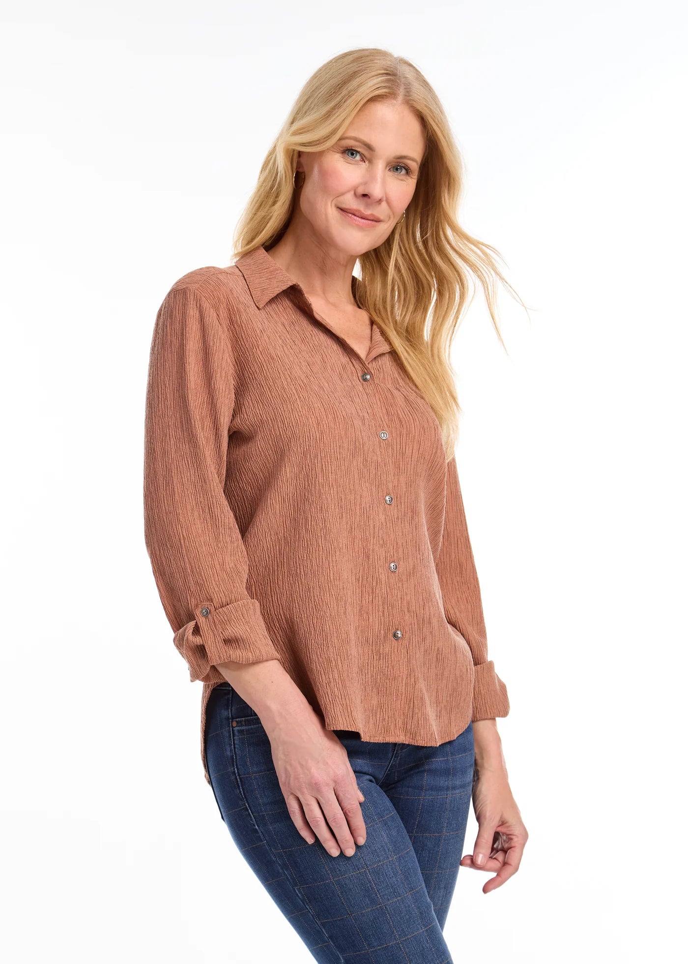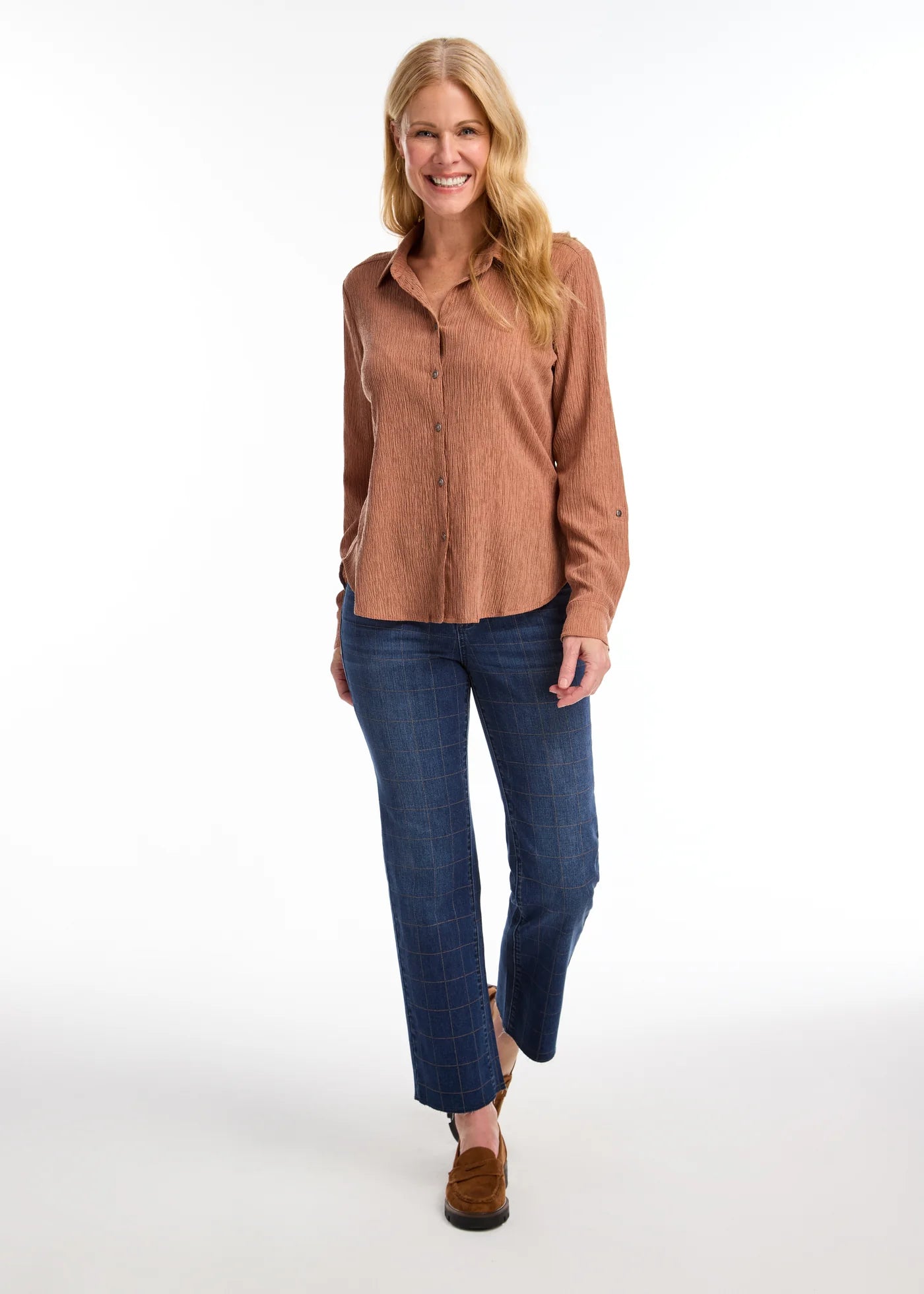 这款经典衬衫柔软透气,适合任何场合,并与牛仔裤、裙子或休闲裤完美搭配。 卷起的袖子用途多样,让您可以随着一天的进展调整您的外观,使其成为您过渡期衣柜的完美单品。