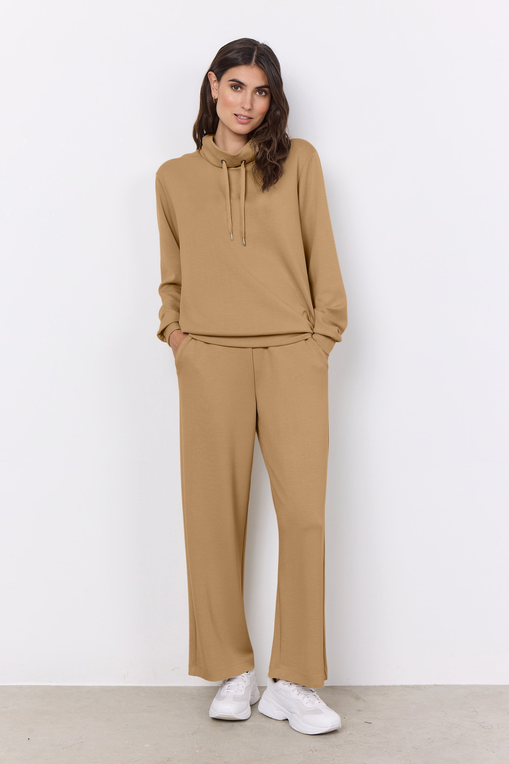 Banu 33 are comfortable pants in a mordal and polyester blend. They have elastic and tie strings at the waist, a straigt leg design and loose fit. These soft sweat pants are perfect for everyday wear and relaxing days at home.
