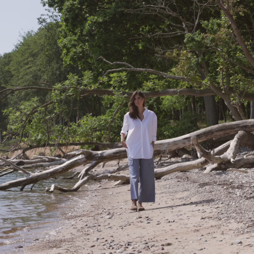 Netti 52 is a classic oversized shirt made from a nice blend of recycled polyester and organic cotton. This lovely shirt has a classic shirt collar, a button closure, long sleeves and an oversized fit. Style this classic shirt with a pair of straight fit jeans and some sneakers for a casual yet classic look.